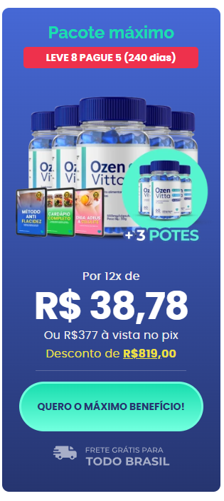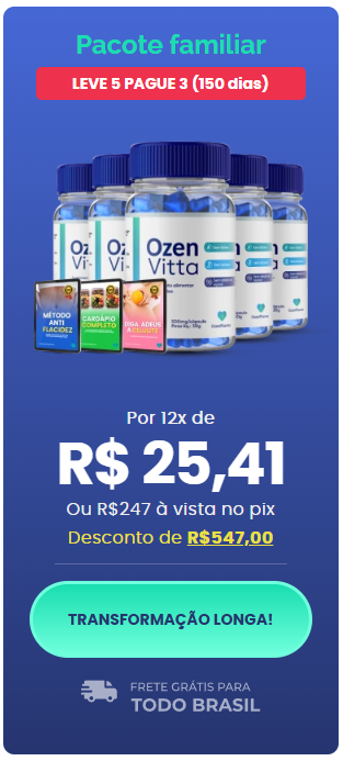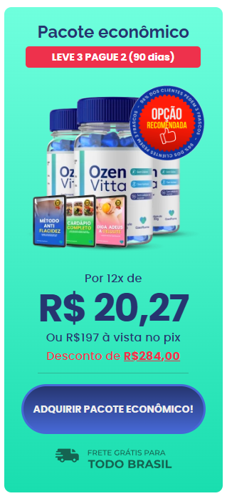 Com apenas 2 cápsulas por dia, o OzenVitta pode te ajudar a desinchar, queimar gordura e recuperar sua autoestima em até 1 mês — mesmo que você esteja há anos se sentindo travada, desanimada e com vergonha do espelho.
